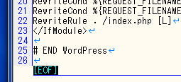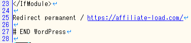 上記『301リダイレクトの設定方法』でダウンロードした .htaccessファイルをテクストエディタで開きます。