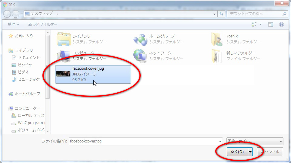 使用する写真をダブルクリックするか、写真を選択後【開く】をクリックしてください。