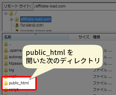 Xサーバーでの説明になりますが、FTPソフトで接続した場合、『public_html』を開いてすぐのディレクトリが、そのドメインのTOPディレクトリです。