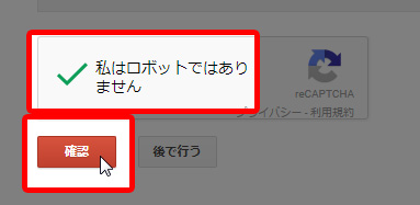 表示されるのを確認したら、『私はロボットではありません』にチェックをいれ『確認』ボタンをクリックします。