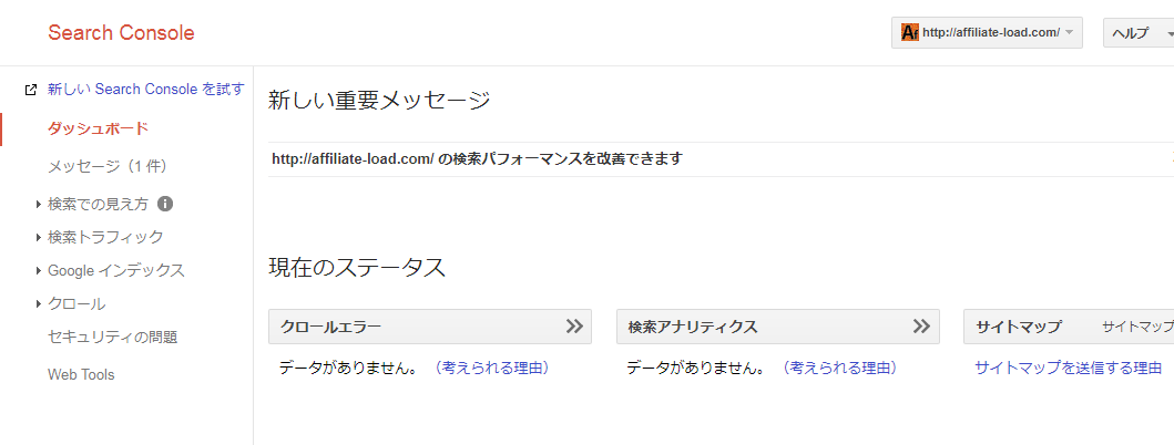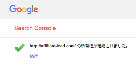 これでサイトの所有者だということが確認され、GoogleConsoleに登録されました。