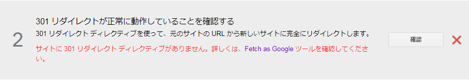 301リダイレクトが正常に動作していれば、下記のように右側にチェックマークが現れますので、チェックマークが出たことを確認したら先へ進みましょう。