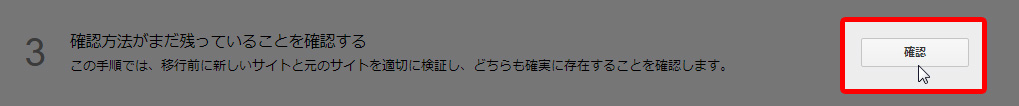 次に、確認方法がまだ残っていることを確認するで『確認』をクリックします。