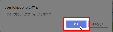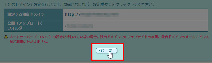 入力した独自ドメインと公開先フォルダ名(ディレクトリ名)が表示されるので、確認して間違いがなければ『設定』をクリックします。