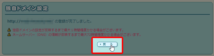 独自ドメインの設定は最大で1時間ほどですが、ネームサーバーの書き換えが反映されるまでは最大で72時間ほどかかる場合があります。
