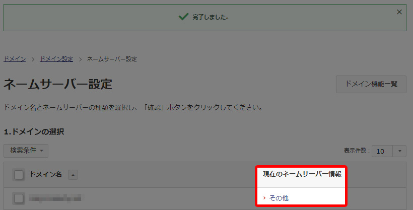 『現在のネームサーバー情報』が初期設定からその他に変わっていますね。