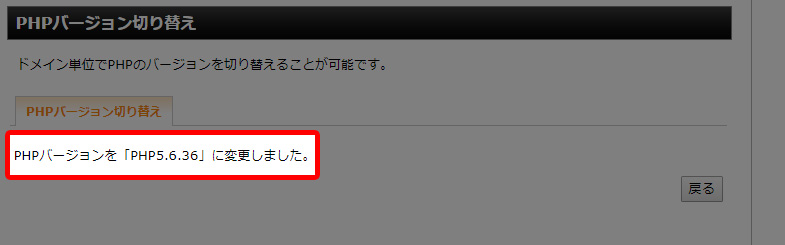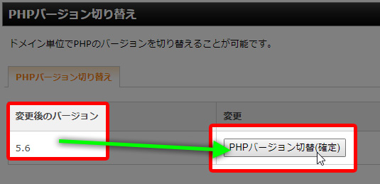 バージョンを確認し、『PHPバージョン切替(確定)』をクリック