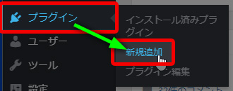 まずはワードプレスの左メニューから『プラグイン』⇒『新規』をクリックします。