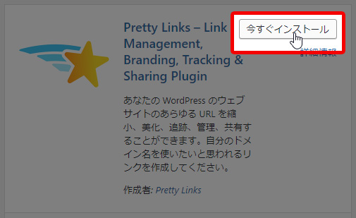 プラグイン一覧が表示されるので、Pretty Linksを『今すぐインストールする』をクリック