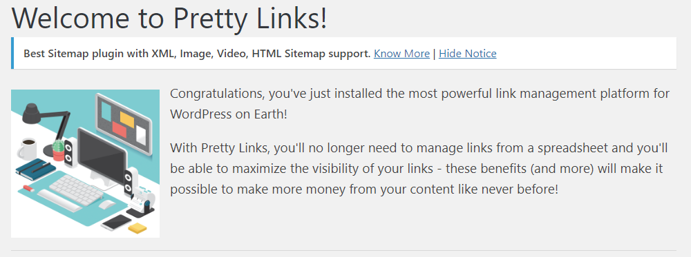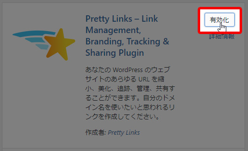 有効化されるとPretty Linksの設定画面に移動します。※しない場合もあるかも