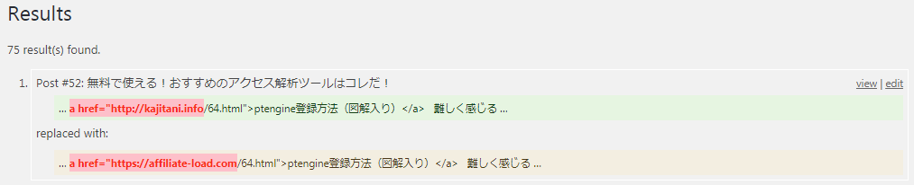 『Replace』をクリックすると数秒で置換え結果が表示されました。