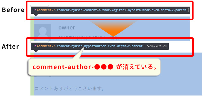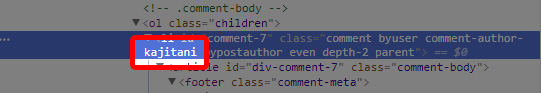 このように、HTMLファイルには(comment-author-●●●)のように書かれています。